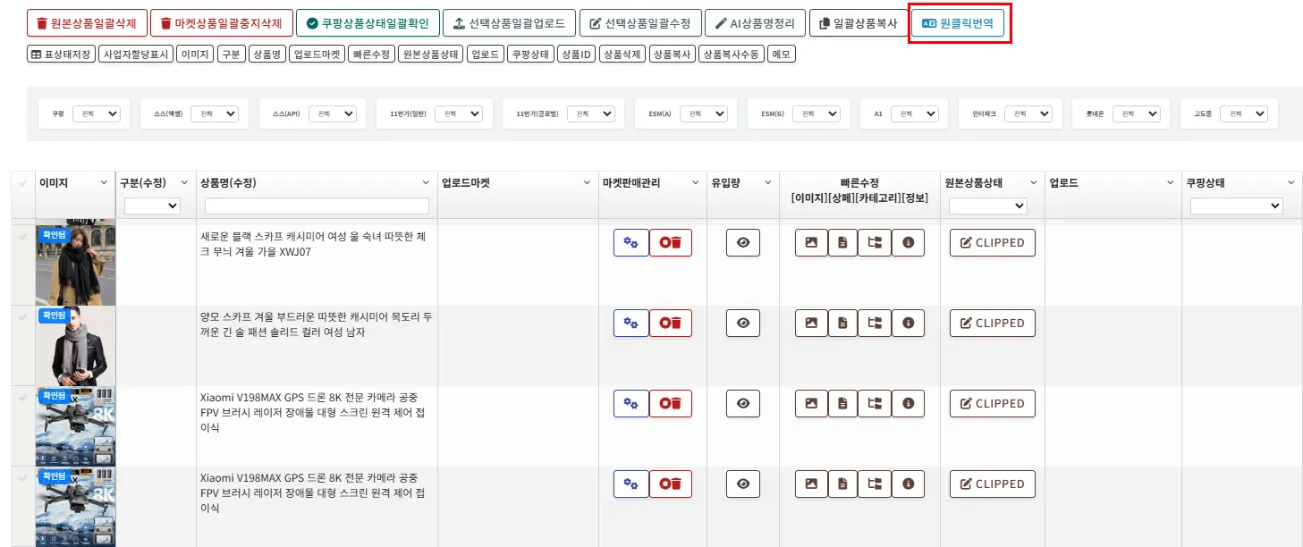 여러 상품 원클릭 번역이 가능합니다.