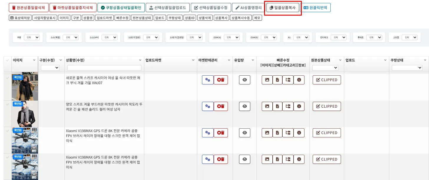 상품복사 : 수집 또는 업로드 했던 상품을 복사하는 기능