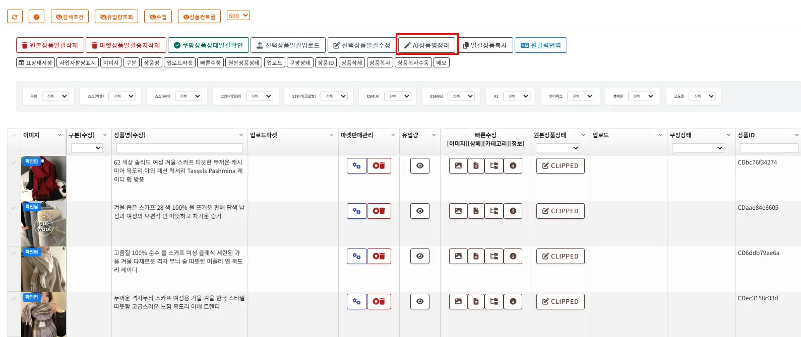 AI 상품명 정리를 하고자 하는 상품을 클릭합니다. AI 상품명 정리가 끝나면 상품명이 변경됩니다.