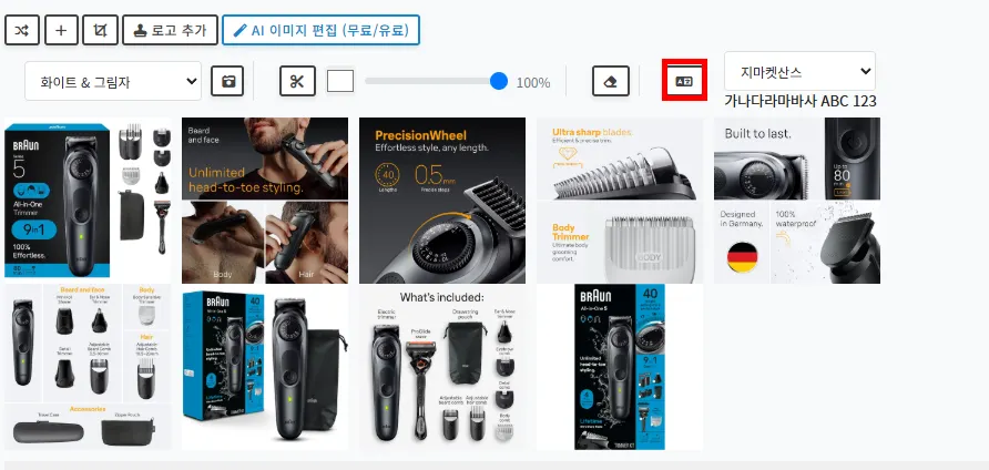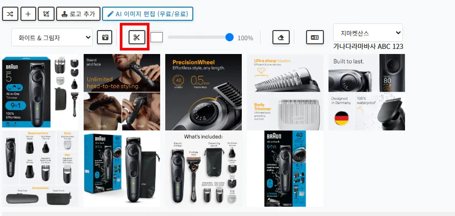 일곱번째 아이콘 : 누끼(상품의 배경 제거) 기능