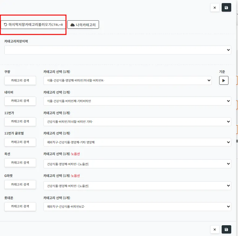 제목을 기준으로 쿠팡 코드를 조회한 후 쿠팡코드와 매핑된 연관 카테고리가 자동 매칭됩니다.