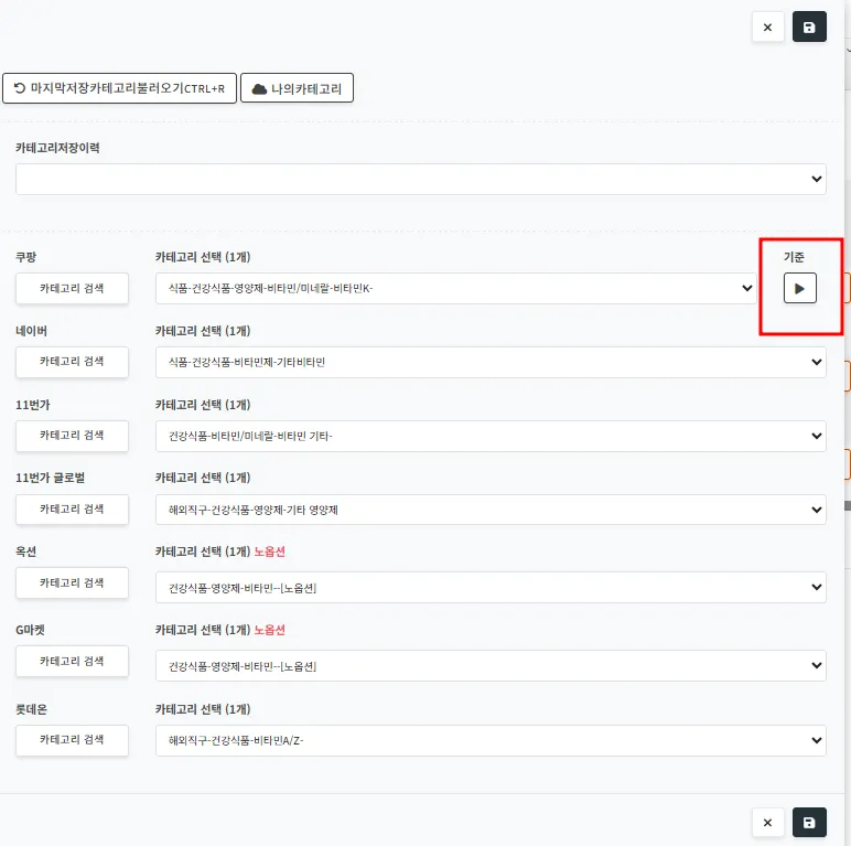 카테고리 변경시 쿠팡 카테고리를 변경 후 기준
