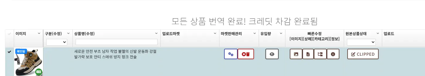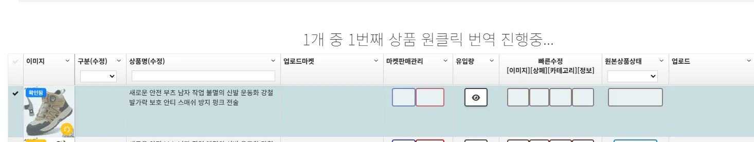 상품 리스트 상단에 원클릭 번역을 클릭합니다.