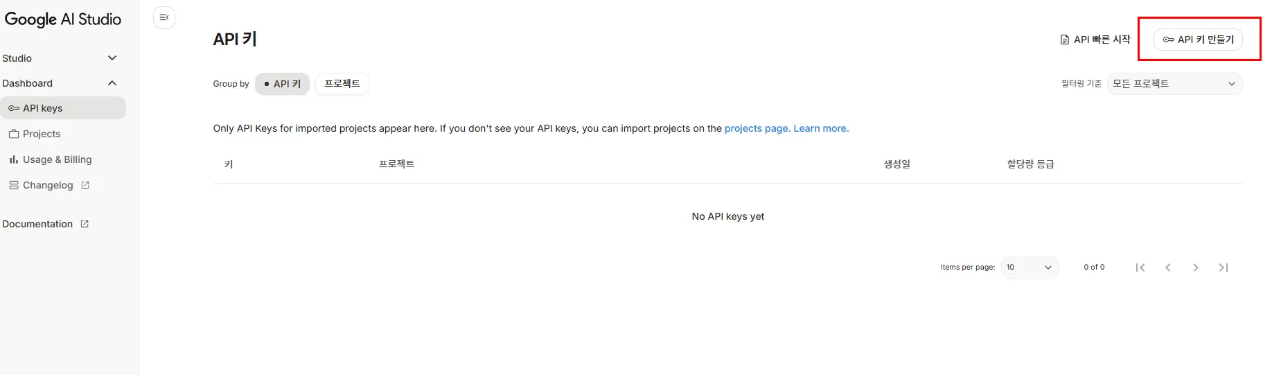 Google AI Studio API Key 는 나노바나나 이미지 편집시 사용됩니다. 해당 기능은 유료인점 꼭 확인해주세요