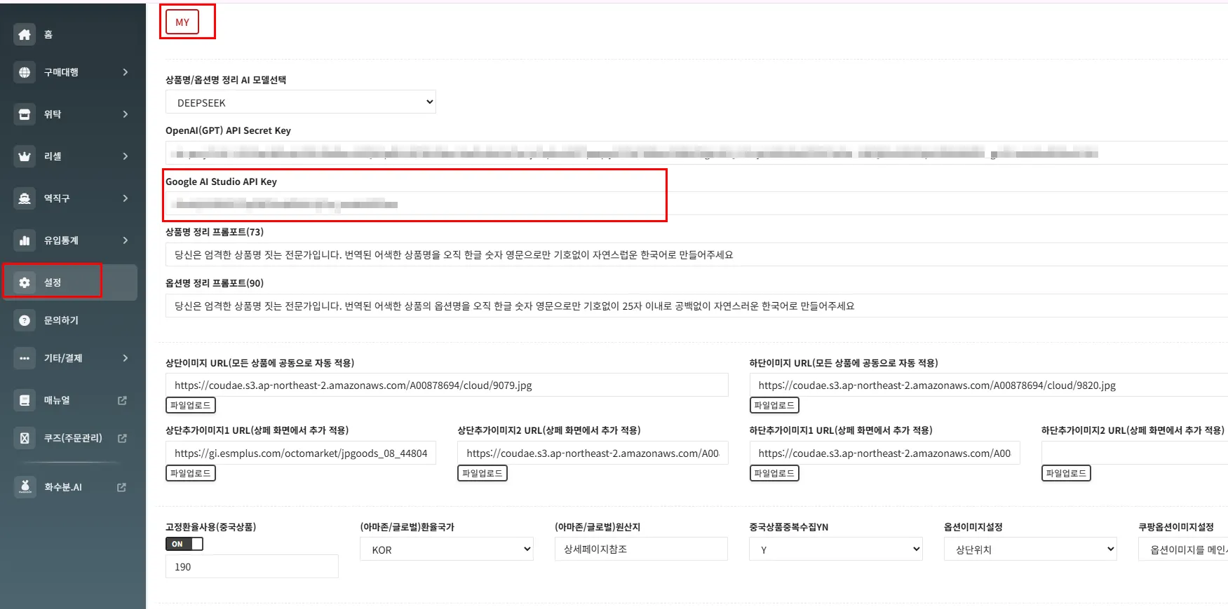 쿠대>설정>MY> Google AI Studio API Key값에 입력해주시면 되십니다.