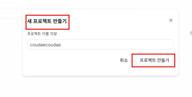 새 프로젝트 만들기>프로젝트 이름을 지정하시고 하단에 프로젝트이름을 지정한 뒤, 프로젝트 만들기를 클릭합니다.