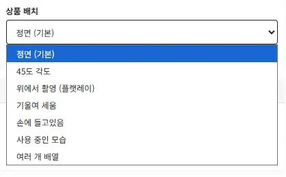 상품 배치의 드롭다운 버튼을 클릭하여 각도를 설정합니다.