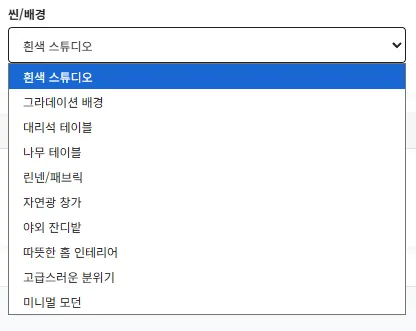 씬/배경의 드롭다운 버튼을 눌러 배경을 지정합니다.