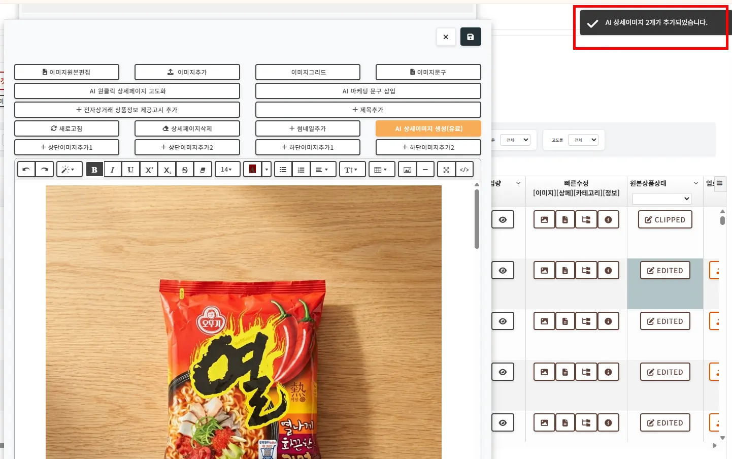 선택한 이미지를 참조하여 AI가 새로운 상세 이미지를 생성합니다.