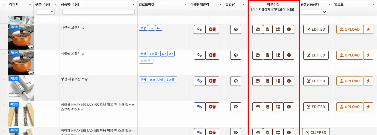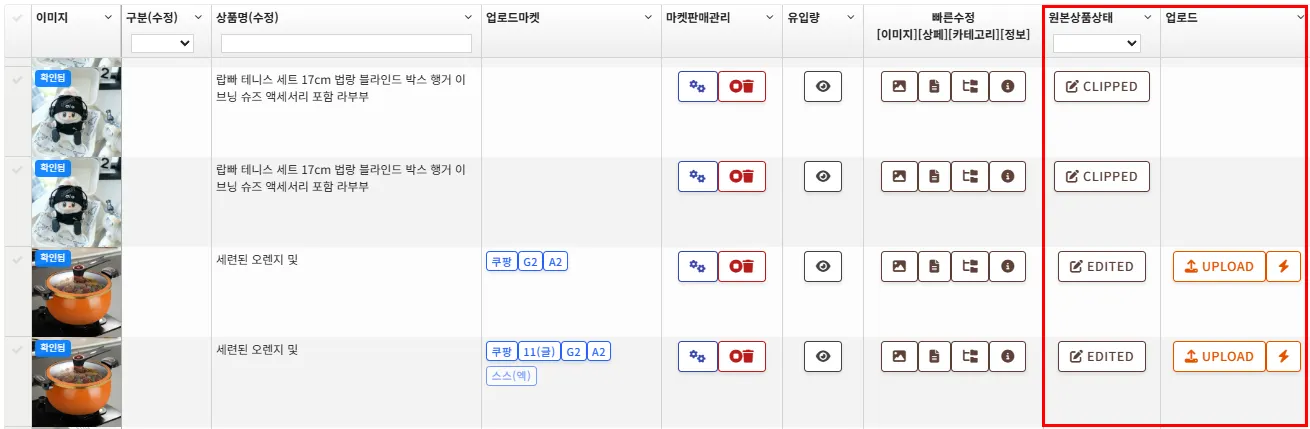 UPLOAD : 상품정보 입력을 마친 상태 또는 마켓에 업로드 전 편집이 완료된 상태