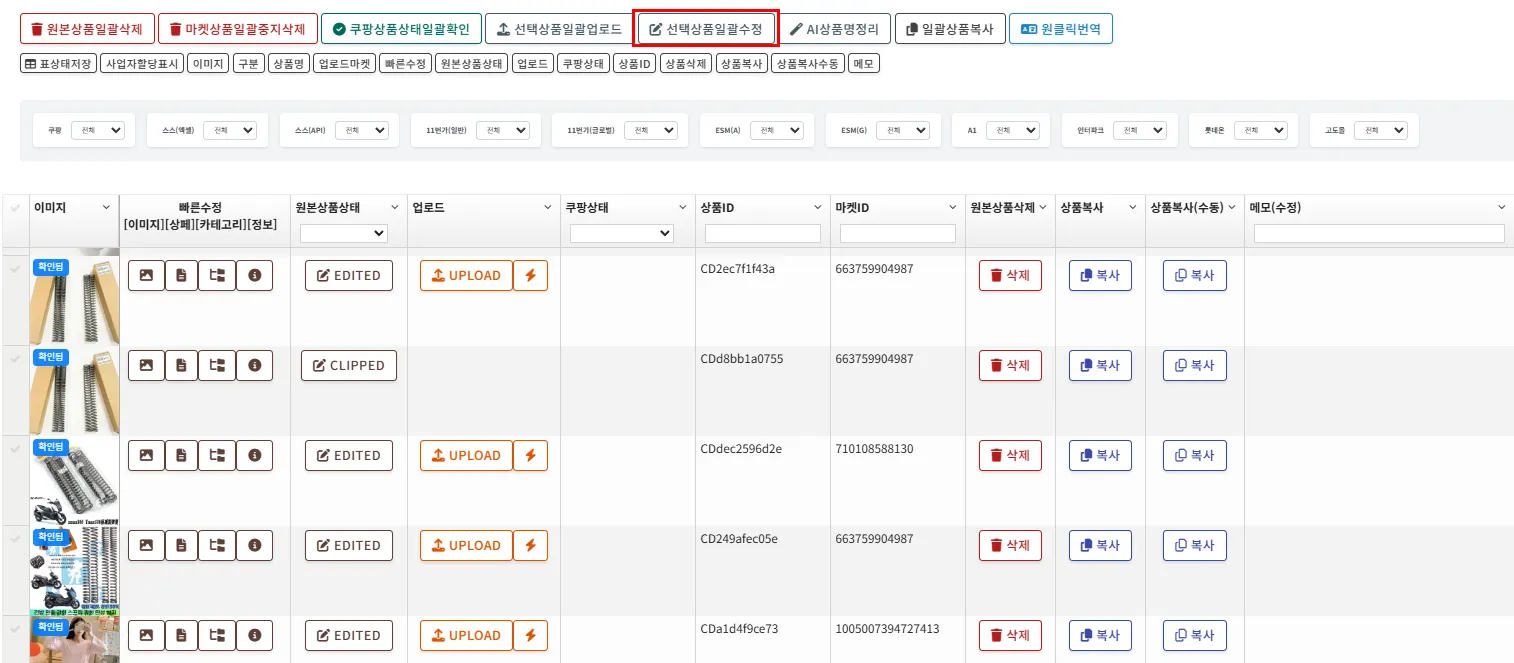 복사하고자 하는 상품을 클릭한 뒤 일괄 상품을 복사합니다.