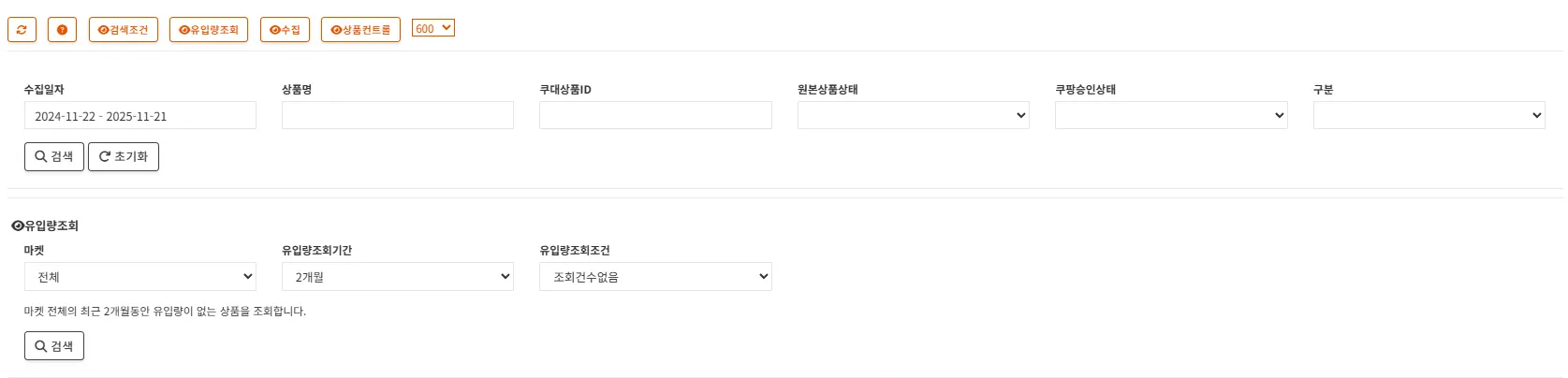 유입량 조회 - 유입량 조회 화면을 보여주거나 숨깁니다.