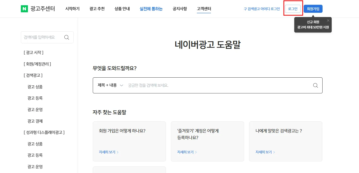 우측에 광고플랫폼>검색광고를 클릭합니다.