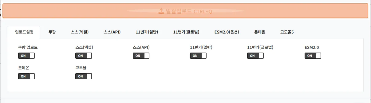 1. 일괄업로드 마켓 설정하기